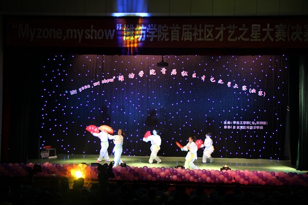 为了丰富大学生的业余文化生活,给大学生一个展示自己的舞台。5月15号由潍坊学院历史文化与旅游学院举办的“潍坊学院首届社区才艺之星大赛(决赛)”于19:30在图书馆报告厅拉开帷幕。其中,体育学院的孙琦、陆青、迟建、荀宝星等十人参加此次比赛并获奖。
