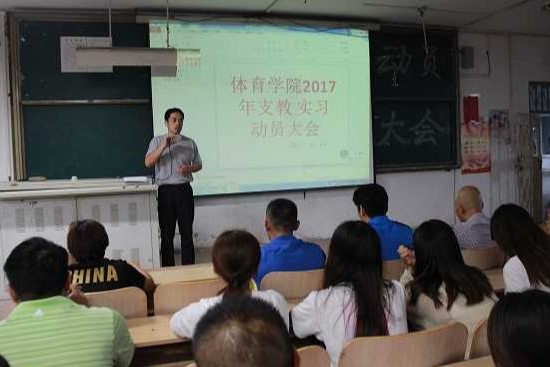 支教既支援教育,学生们脱离学校到县市区任教,由学生到老师,由受教到授教,对每个同学来说都是种考验,也是对同学们的一次检验,同样也是给同学们提供一个平台,让同学们体会从学生到老师的转变过程,从而在毕业之后更好的适应工作。相信我们体育学院2015级体育教育专业的同学们会圆满的完成本学期的实习支教工作。