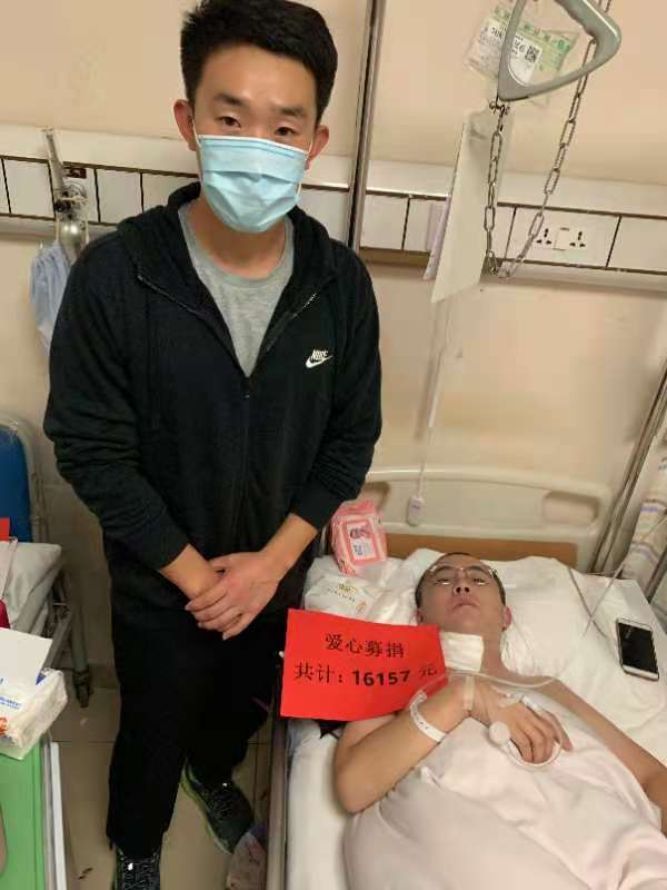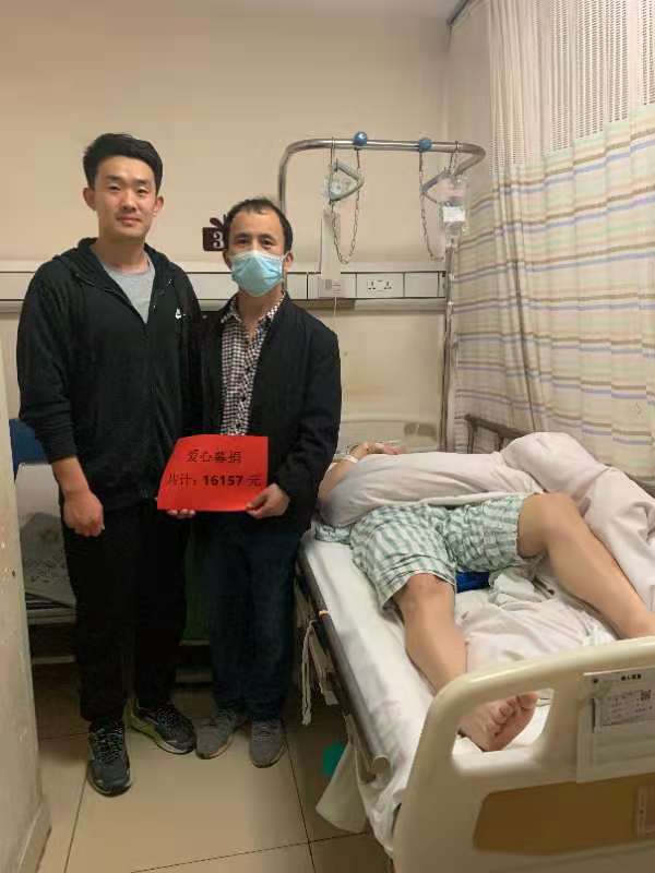为了进一步了解张道松同学的病情,近日,体育学院学工办主任魏星、18级辅导员张健两位老师代表体育学院专程赶往上海长征医院,看望因颈椎肿瘤住院的张道松同学,将募集到的善款交到本人手中,并送去了全院师生真诚的祝福,祝愿他早日康复、回归校园。