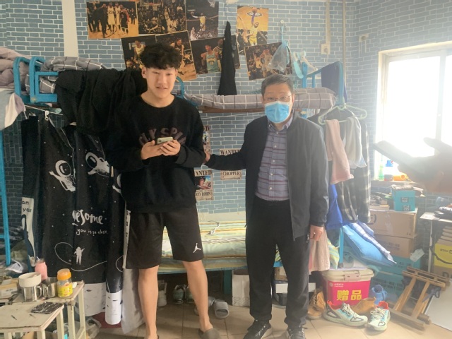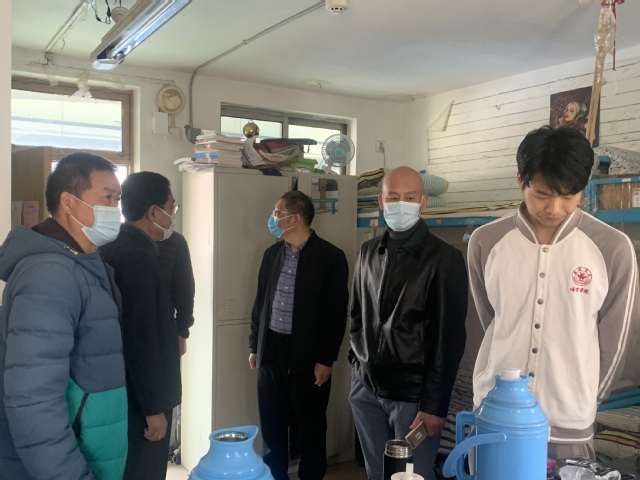 针对当前严峻复杂的疫情防控形势,为进一步织密扎牢疫情防控网,守护全体师生的生命安全和身体健康,3月16日,体育学院党总支书记李秋之、院长耿道熙、党总支副书记王松森、团总支书记卢永波以及2018级辅导员战新军老师一行,深入学生宿舍走访看望在校学生。