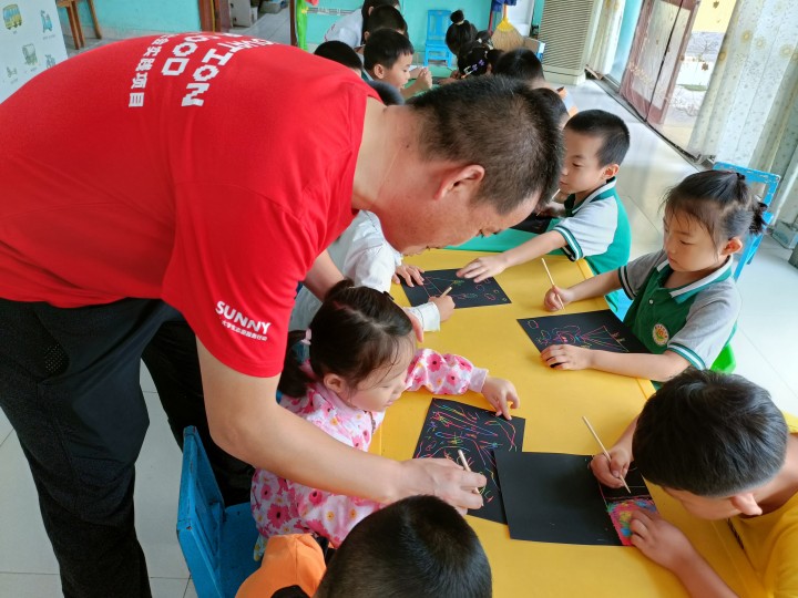 活动前期,指导老师卢永波提前与馨帝都幼儿园园长王金娟老师取得联系,沟通活动内容。根据沟通内容,爱心服务队成员精心设计活动方案,购买了绘画、石膏、颜料等物品,并准备丰富多彩的游戏。活动期间,在志愿者和幼儿园老师的帮助下,孩子们靠着自己的丰富想象,绘画出自己的小小世界。在涂画石膏娃娃时,孩子们执起画笔,在雪白的石膏娃娃上涂画出属于自己的色彩,一个个充满想象力的作品在孩子们手中诞生。通过绘画、涂彩和游戏,激发了孩子们的想象力与创作力,增强了孩子们的爱国主义情怀。活动最后,体育学院爱心服务队与潍坊市坊子区馨帝都幼儿园确定合作关系,定期开展志愿服务活动。