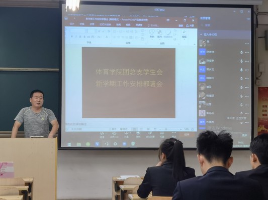为明确工作目标,调整心态,调动工作积极性,体育学院于8月28日下午在T305教室召开体育学院团总支学生会新学期工作安排部署会。会议由体育学院团总支书记卢永波老师主持,假期留校学习一直没走的学生干部线下参与,其他学生干部线上参与