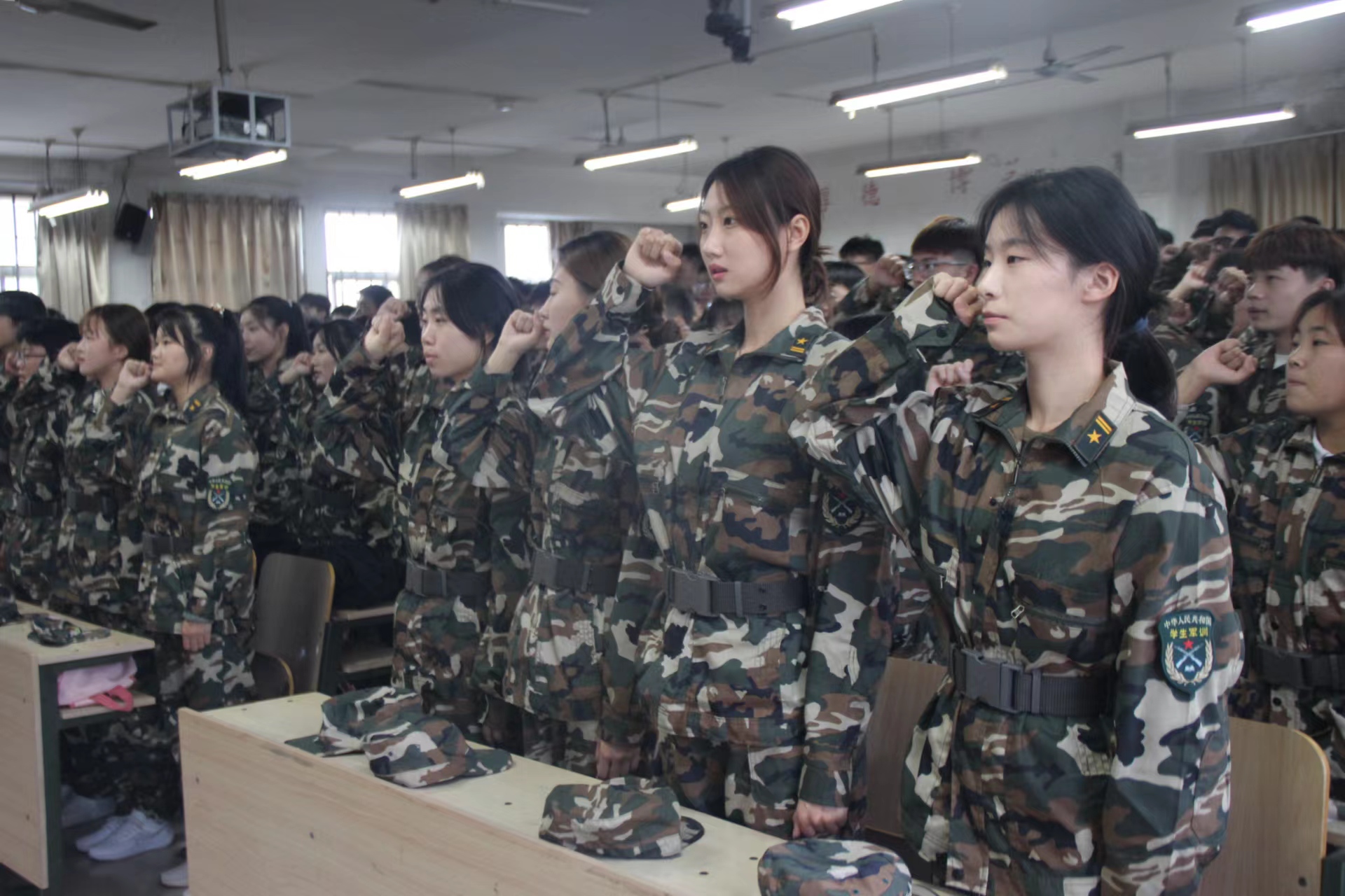 大会最后,全体新生集体起立,庄严宣誓:“服从命令,听从指挥,尊重教官,刻苦训练,为潍院争光,为体院添彩!”