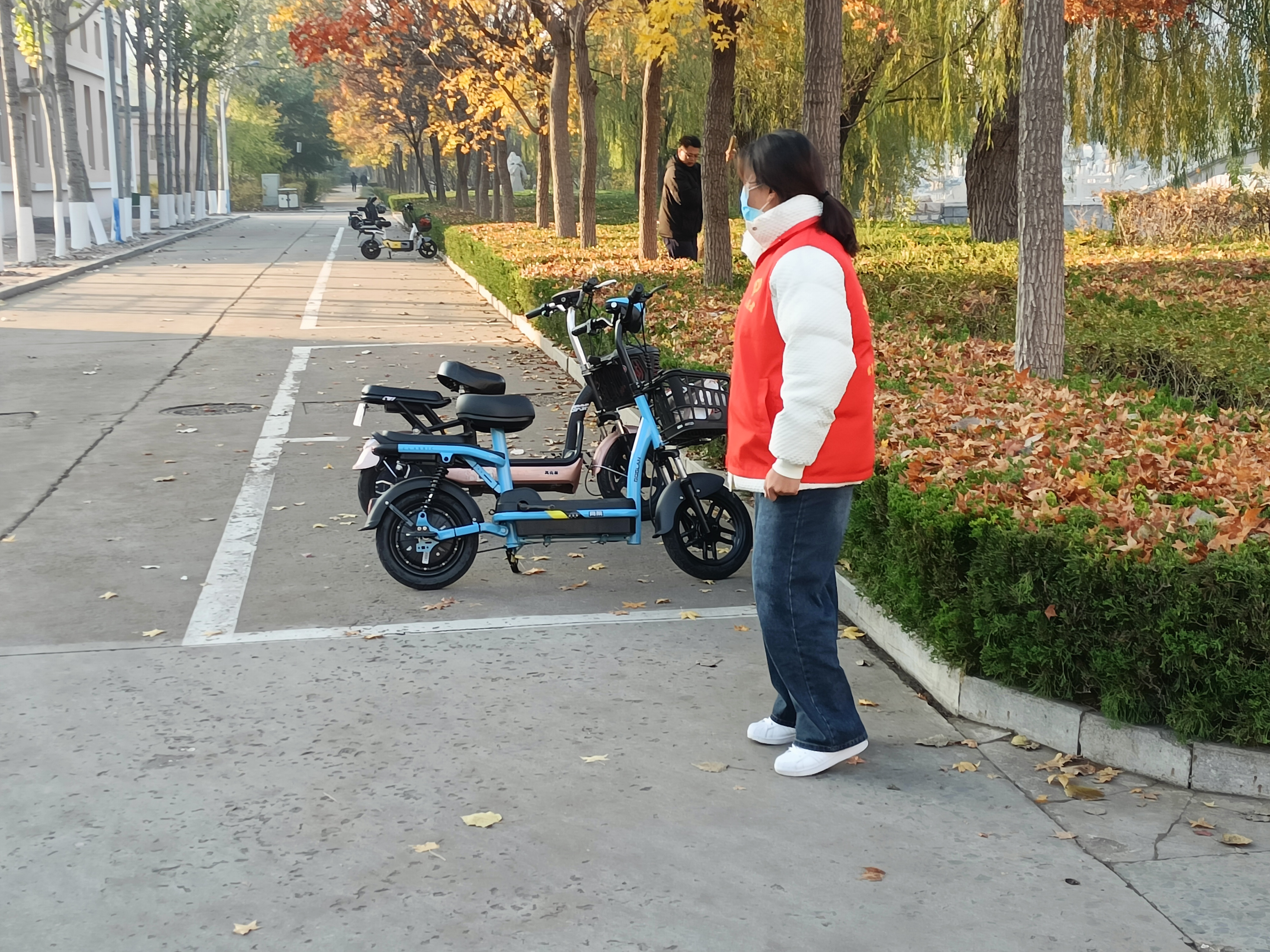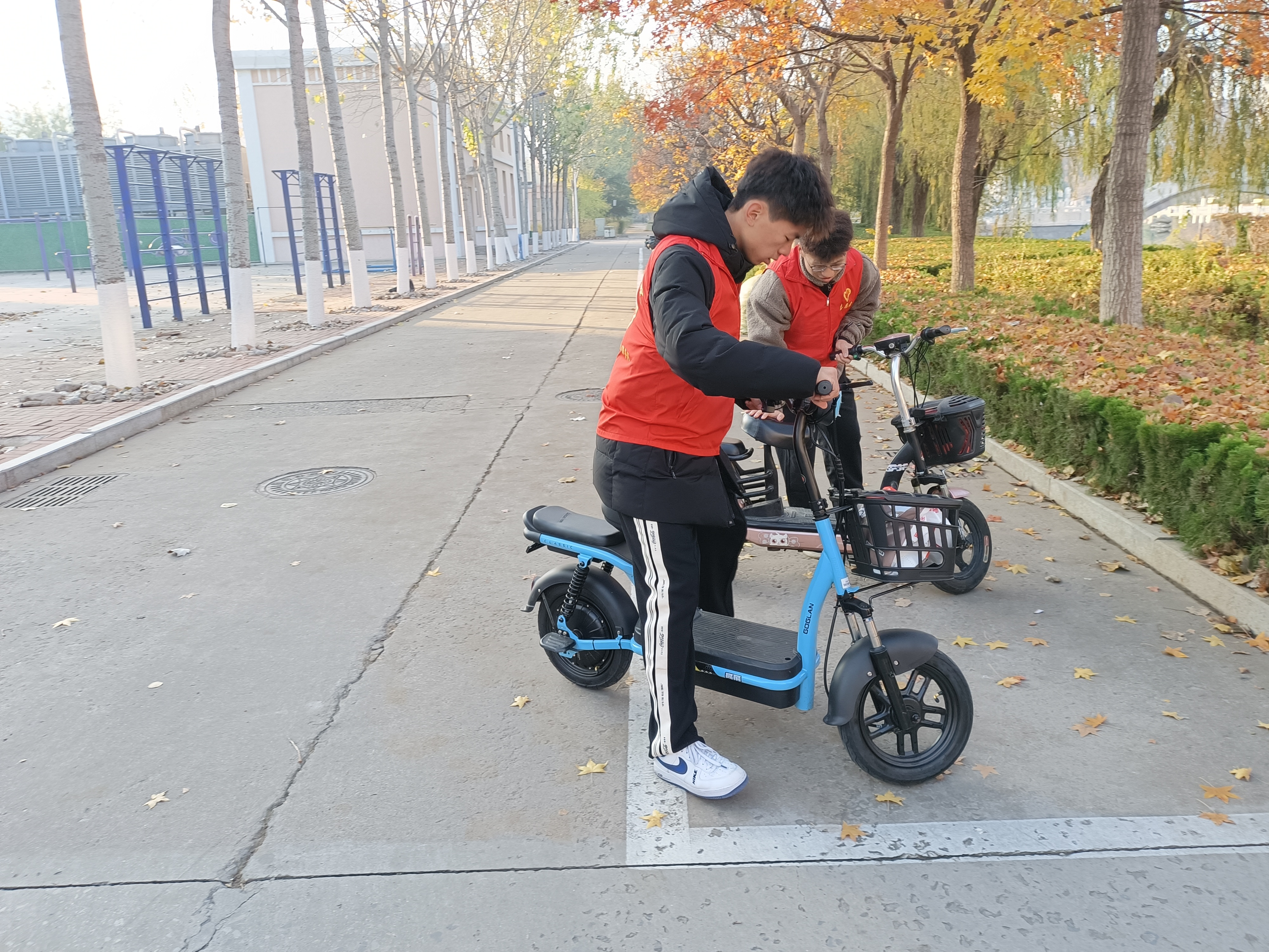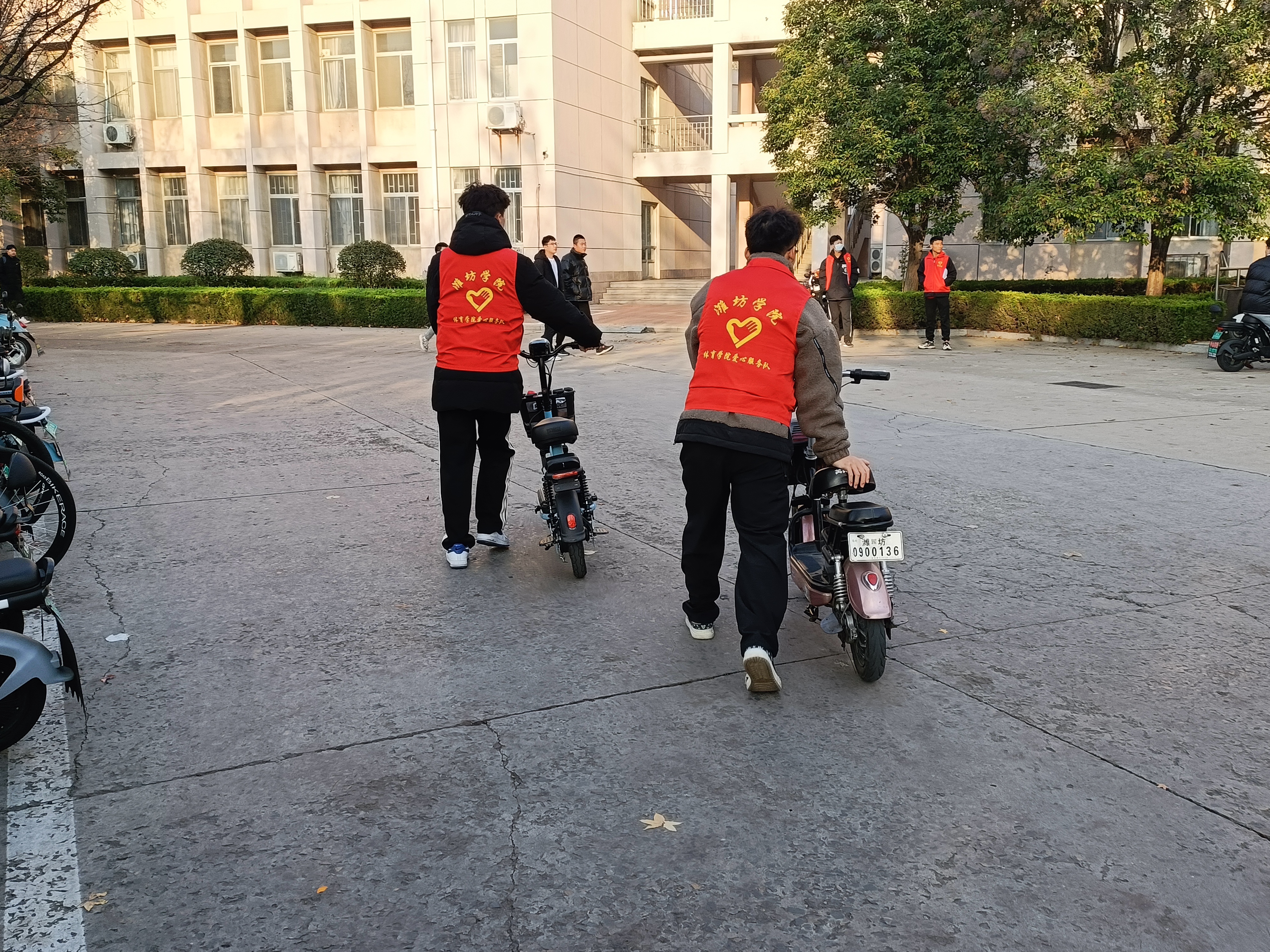 活动期间,志愿者们分工明确,将道路两旁乱停乱放的电动车集中推至规定停放区域,并对停放区进行了统一规范整理。经过志愿者们的共同努力,道路周边电动单车全部摆放整齐有序,行人行车更加顺畅,校园环境更加整洁。志愿者们向过往骑车的同学积极宣传文明骑行、有序停放的重要意义,引导骑行者将电动车摆放到相对集中的停放区域,鼓励大家监督身边存在的不文明行为。体育学院爱心服务队以自身形象和实际行动呼吁同学们骑行后自觉将电动车、自行车停放在规定的停车区,共同美化校园环境,维持校园秩序,让我们一起做文明的骑行者、文明的停放者、文明的宣传者!