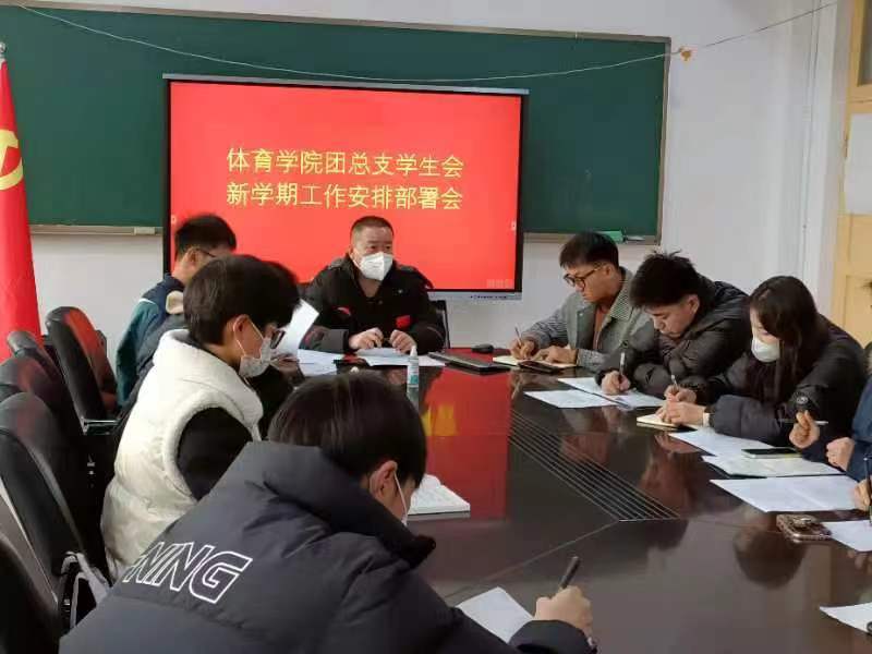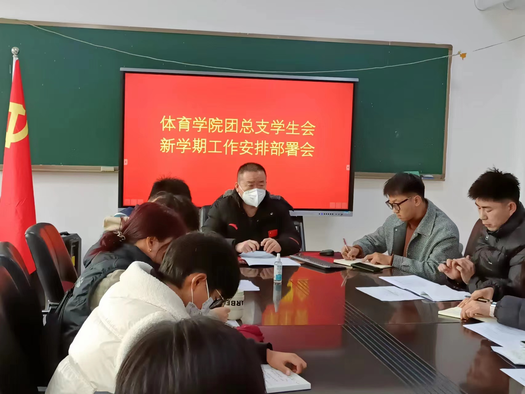 为全面推进新学期学生工作开展落实,为新学期团学工作指明方向,2月12日,体育学院在T206会议室召开新学期团总支学生会工作安排部署会。体育学院团总支书记(学生工作办公室)书记(主任)卢永波老师主持此次会议,2022级辅导员孙圣林老师、第二十二届团总支学生会主席团成员参加会议。