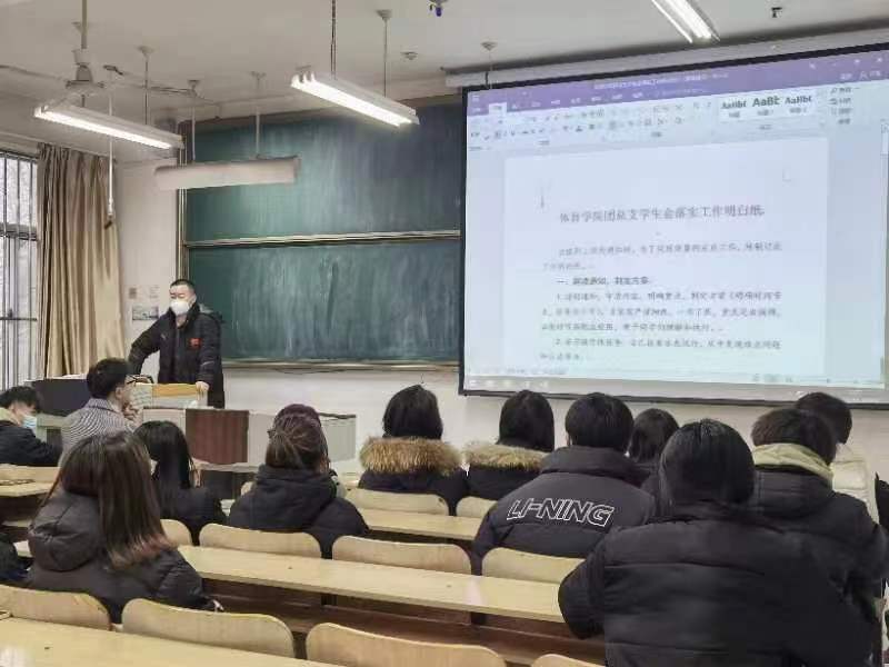 为充分调动和发挥学生的主动性、积极性,进一步加强学生干部的岗位意识,提升其理论水平、服务意识和服务能力。2月12日上午在体育学院T207教室开展学生干部能力提升培训会。团总支(学生工作办公室)书记(主任)卢永波、22级辅导员孙圣林及团总支学生会学生干部参与本次培训会。