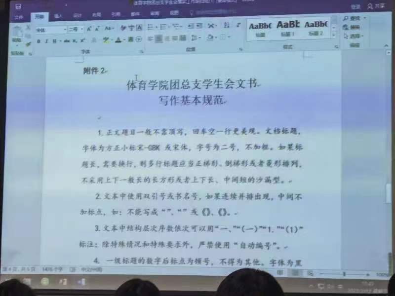会议伊始,卢永波老师从“活动策划的技能与标准”与“学生工作规范和效率”两方面展开。通过“体育学院团总支学生会落实工作明白纸”与“工作材料归档明白纸”的展示,剖析了同学们日常工作中经常遇到的问题与解决方法,详细讲解了策划方案步骤及材料总结需要注意的问题,如各级标题的正确使用与写作基本规范,并以“三下乡活动明白纸”为例向同学们讲解活动策划中的正确格式。最后,卢永波老师对规范学生干部的工作作风进行了具体说明,提出了更高的标准,使全体学生干部清楚地明白作为学生干部的责任与使命。有利于学生干部进一步提高自己的工作能力,有助于带动全体学生共同进步。