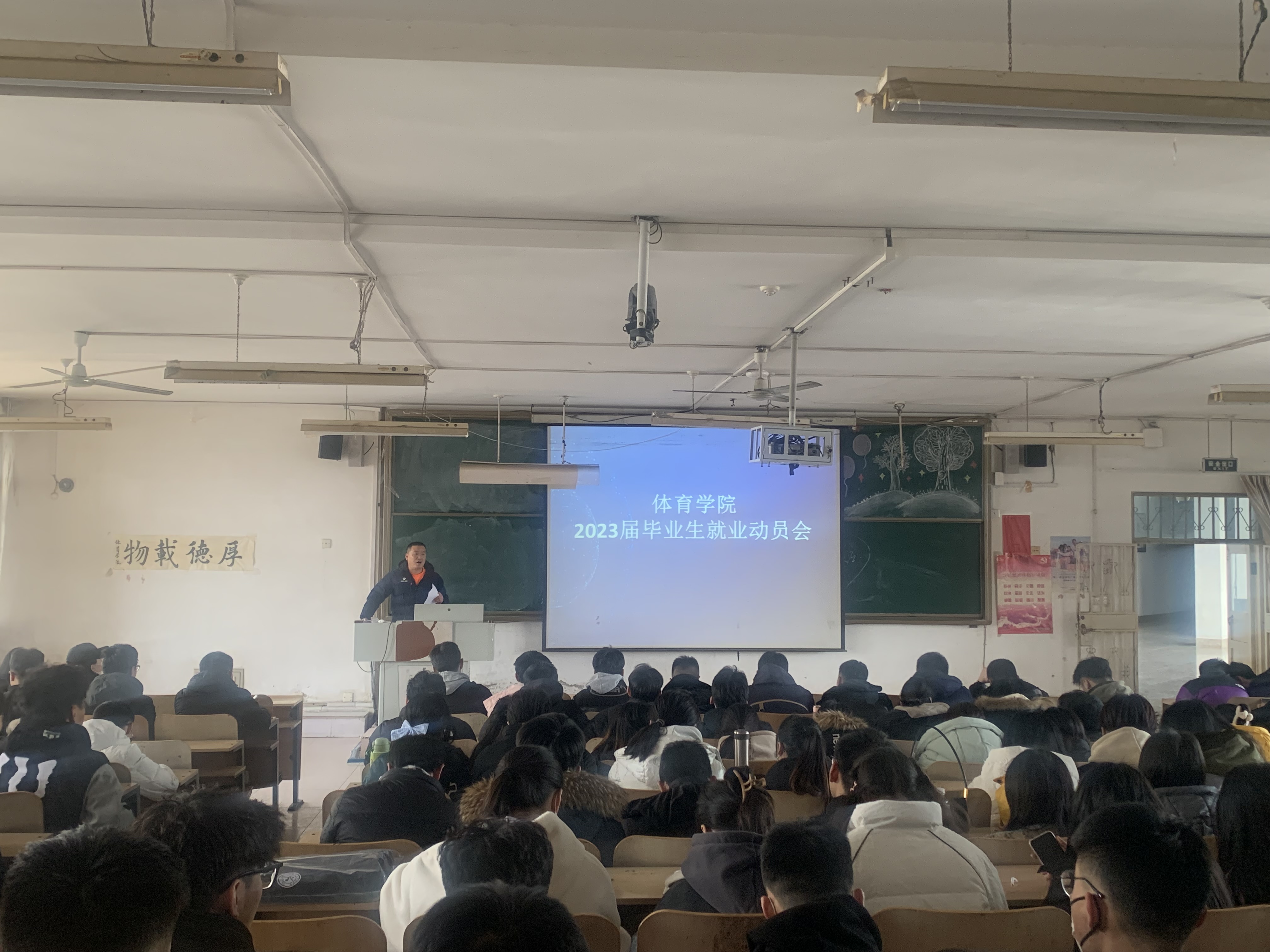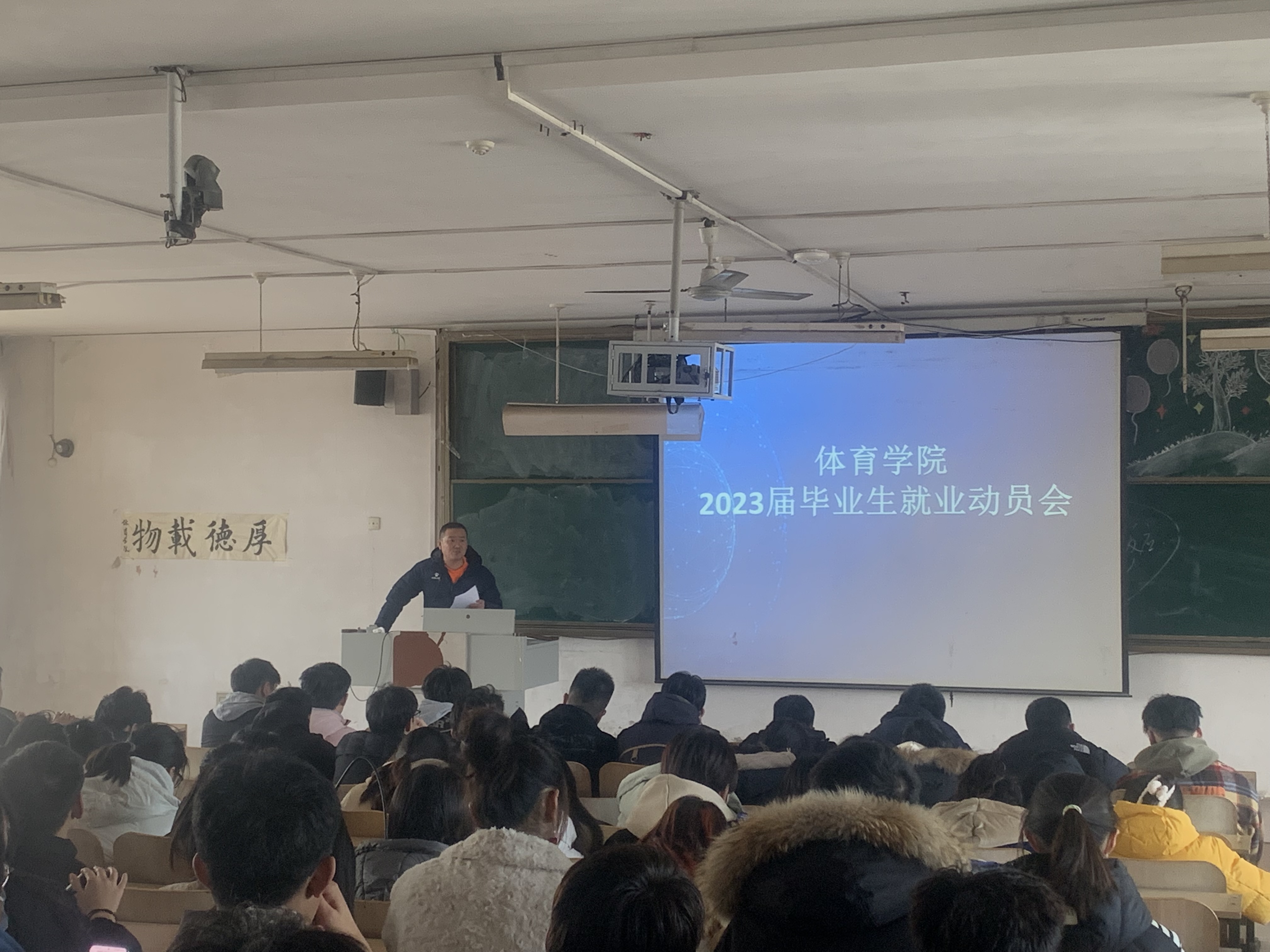 为扎实做好毕业生就业工作,不断促进毕业生充分就业、高质量就业,将毕业生就业工作落到实处,2月14日,体育学院在T301教室举行2023届毕业生就业动员会。会议由体育学院就业指导专员卢永波老师主持,2023届全体毕业生参加。