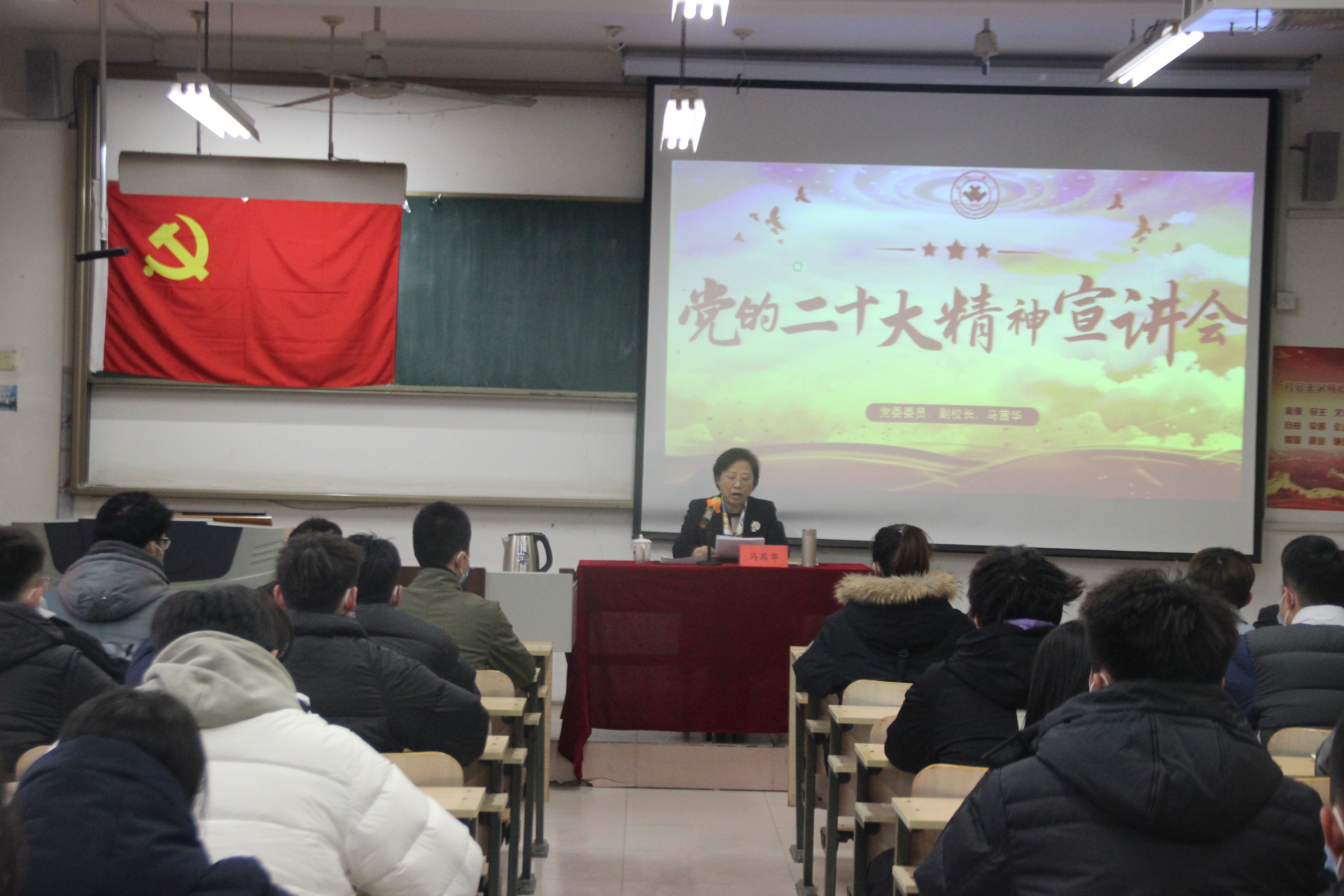 为深入学习贯彻落实党的二十大精神,确保党的二十大精神入脑入心、落地落实,3月16日,学校党委委员、副校长马茜华来到体育学院为师生作党的二十大精神专题宣讲。