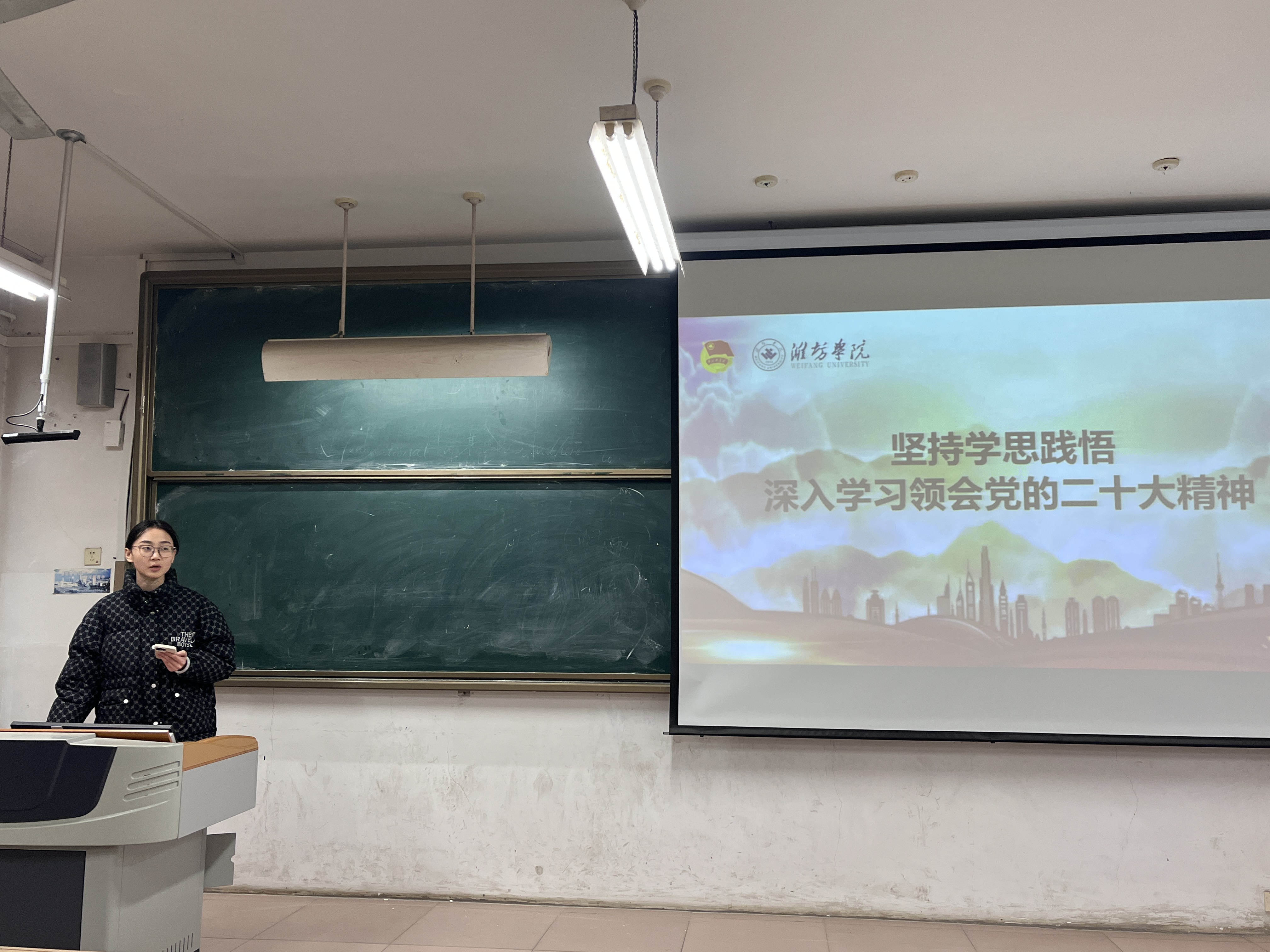 随后,教师教育学院尤晓彤同学以青年为主题,围绕习近平总书记在党的二十大报告中对广大青年的寄语:“争作有理想、有担当、肯奋斗的新时代好青年”进行深入讲解。最后,计算机工程学院周晓晗同学带领同学们深入学习领会党的二十大精神,鼓励同学们争做新时代好青年,勇做时代的弄潮儿,在实现中国梦的生动实践中放飞青春梦想,在为人民利益的不懈奋斗中书写人生华章!