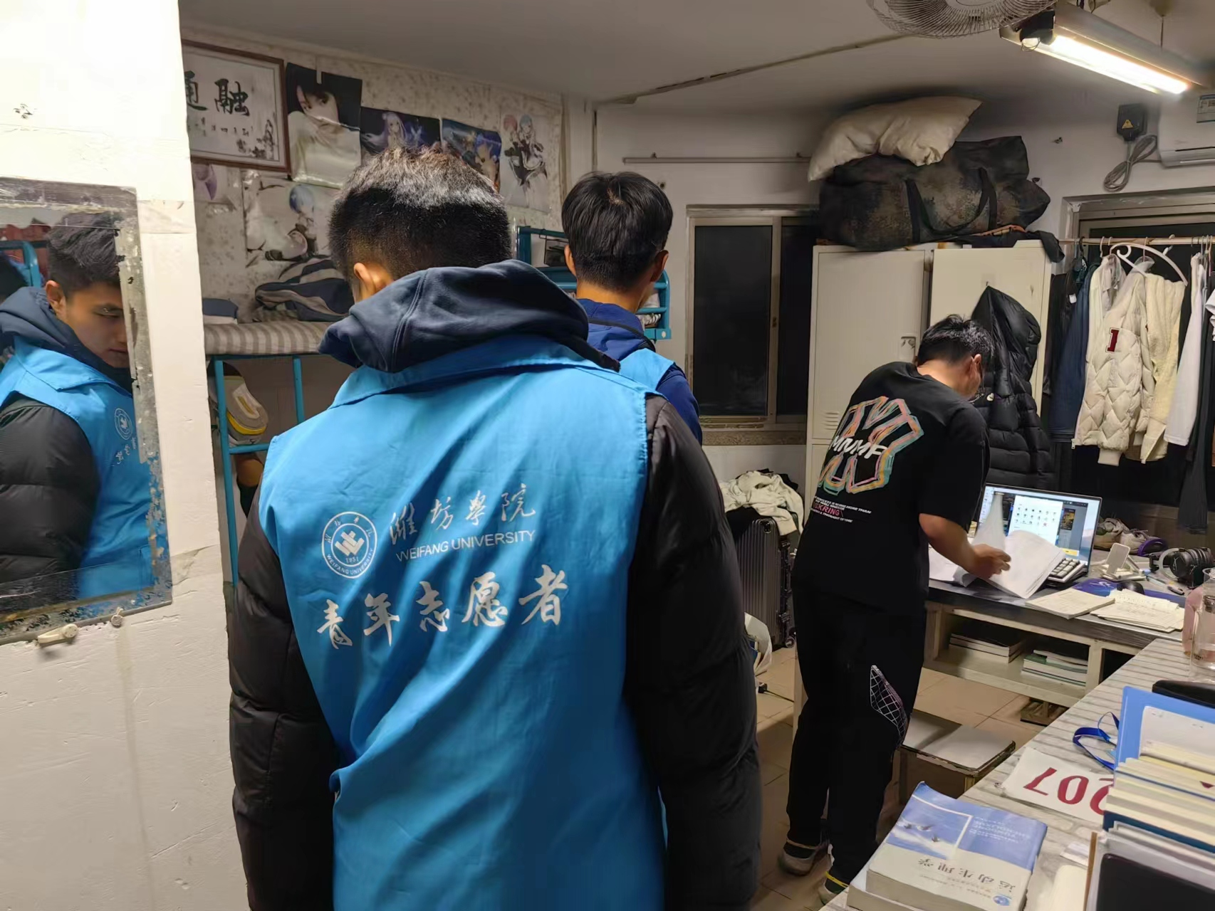 在学习之余,为保障同学们的生活质量,排除宿舍内部的安全隐患,帮助同学们培养良好的作息和生活习惯,宿管部成员姚锡宇,冷雨龙等同学也跟从学院指挥,对宿舍进行检查。他们对待宿舍排查工作十分认真,严查严管,不徇私舞弊。为体育学院优秀学风建设提供了良好的保障。在志愿服务活动中,很多同学踊跃参与了校园自行车摆放。他们用勤劳的双手为潍坊学院的校园环境添加了一份美。