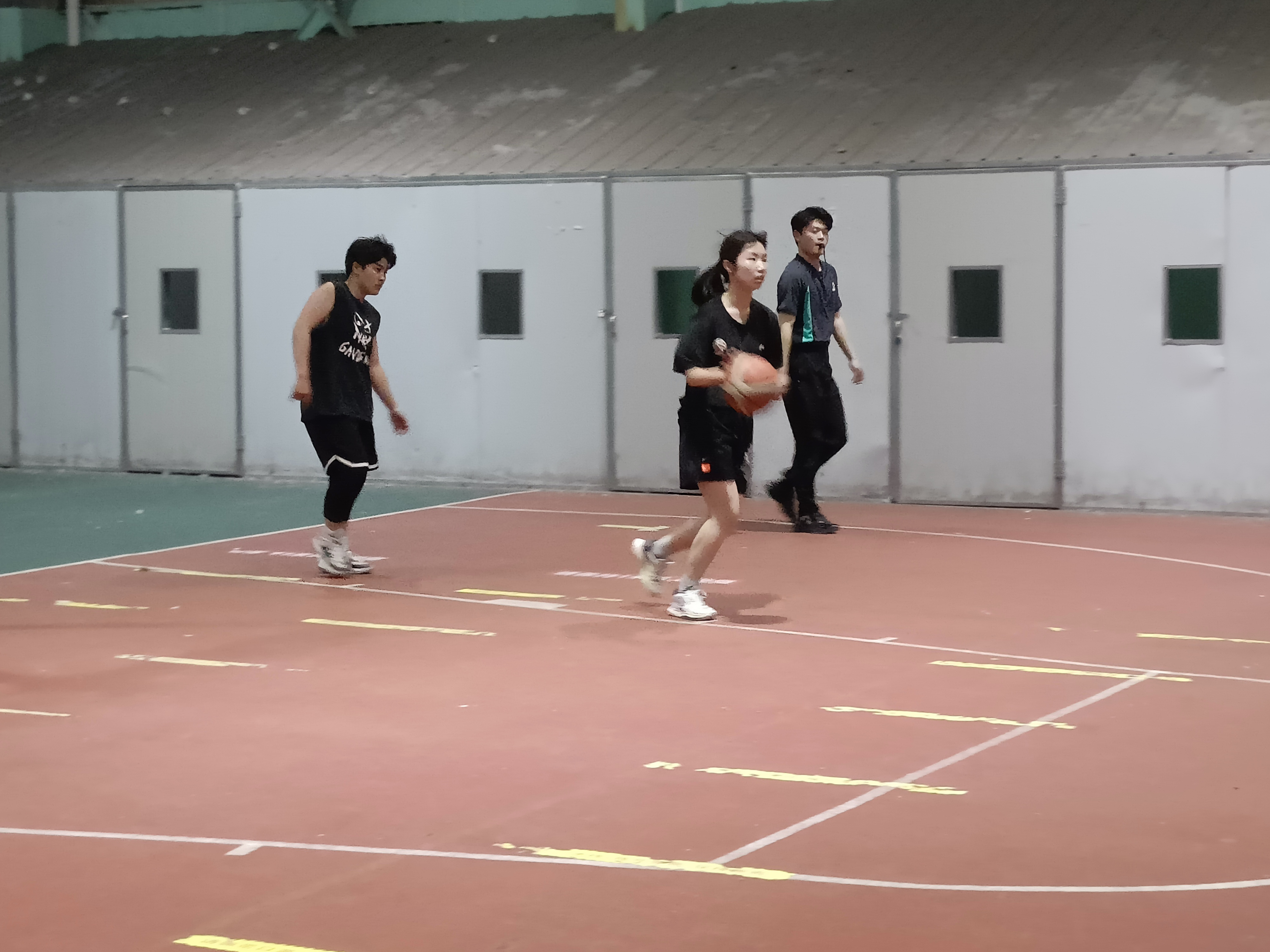 比赛在响亮的哨声中正式开始,双方都迅速进入“战斗状态”,你来我往,你攻我守,毫不示弱。赛场上每一个令人激动的瞬间,后仰跳投,三步上篮,让比赛精彩万分,气氛炸裂!跑位、传球、持球、瞄准、投篮、进球每一个动作都娴熟自如,现场爆发出阵阵欢呼声,那是都是青春在呐喊。