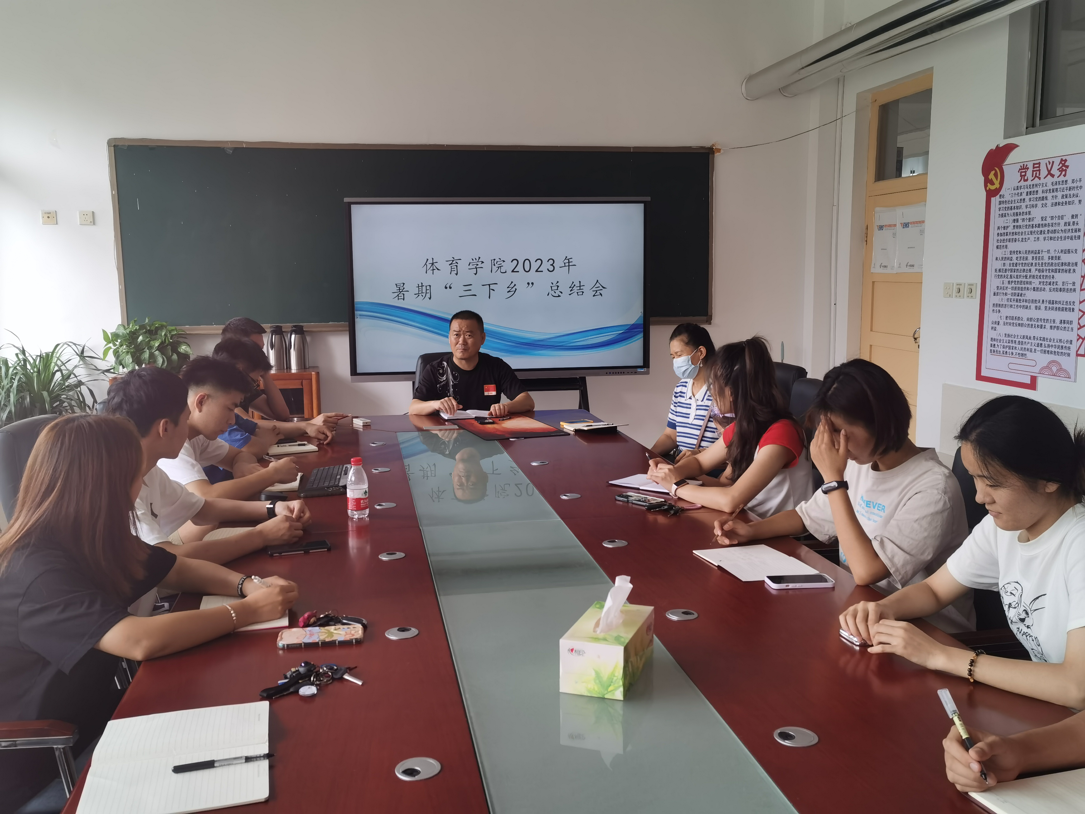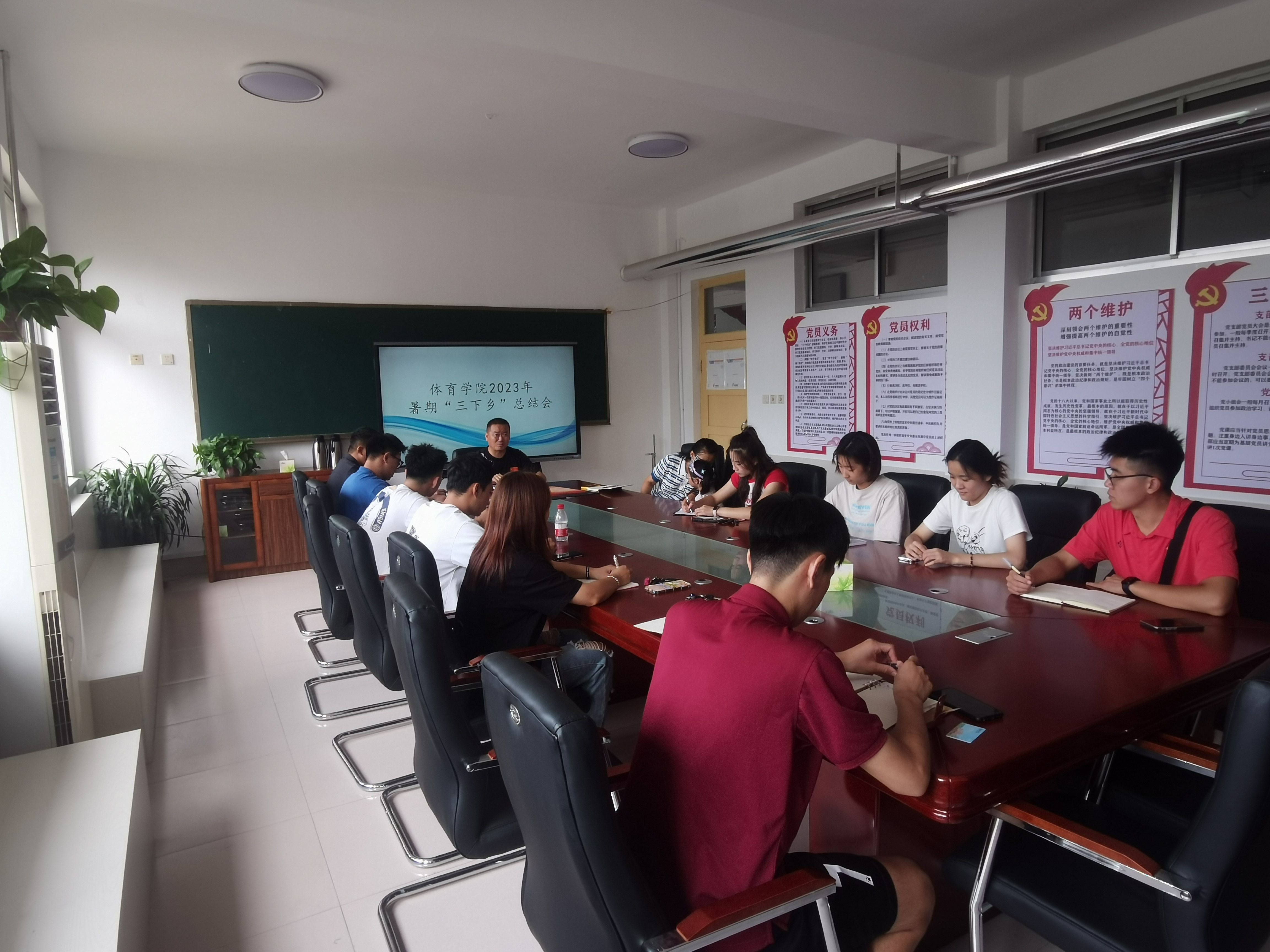 为深入学习贯彻党的二十大精神,回顾总结暑期“三下乡”社会实践活动,进一步完善“三下乡”社会实践后续工作。8月26日,体育学院2023年暑假“三下乡”总结大会在体育学院 T206会议室举行,体育学院团总支(学工办)书记(主任)卢永波老师主持此次会议,2020级辅导员庄伟老师、2021级辅导员高欢老师、2022级辅导员孙圣林老师以及第二十二届团总支学生会主席团成员参加会议。