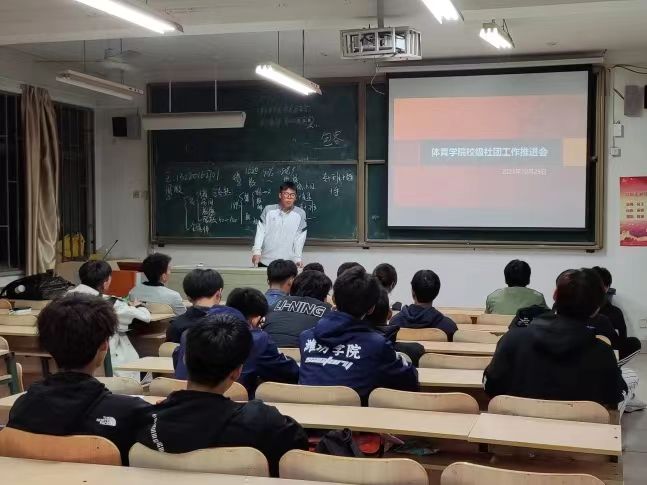为推动社团发展,全面提高社团管理建设工作效率和服务质量,丰富同学们的课余活动,繁荣校园文化,10月28日晚,体育学院在T303教室开展了校级社团工作推进会,本次会议由体育学院第二十三届团总支学生会执行主席闫腾飞和石泽新主持,各社团负责人参加本次会议。