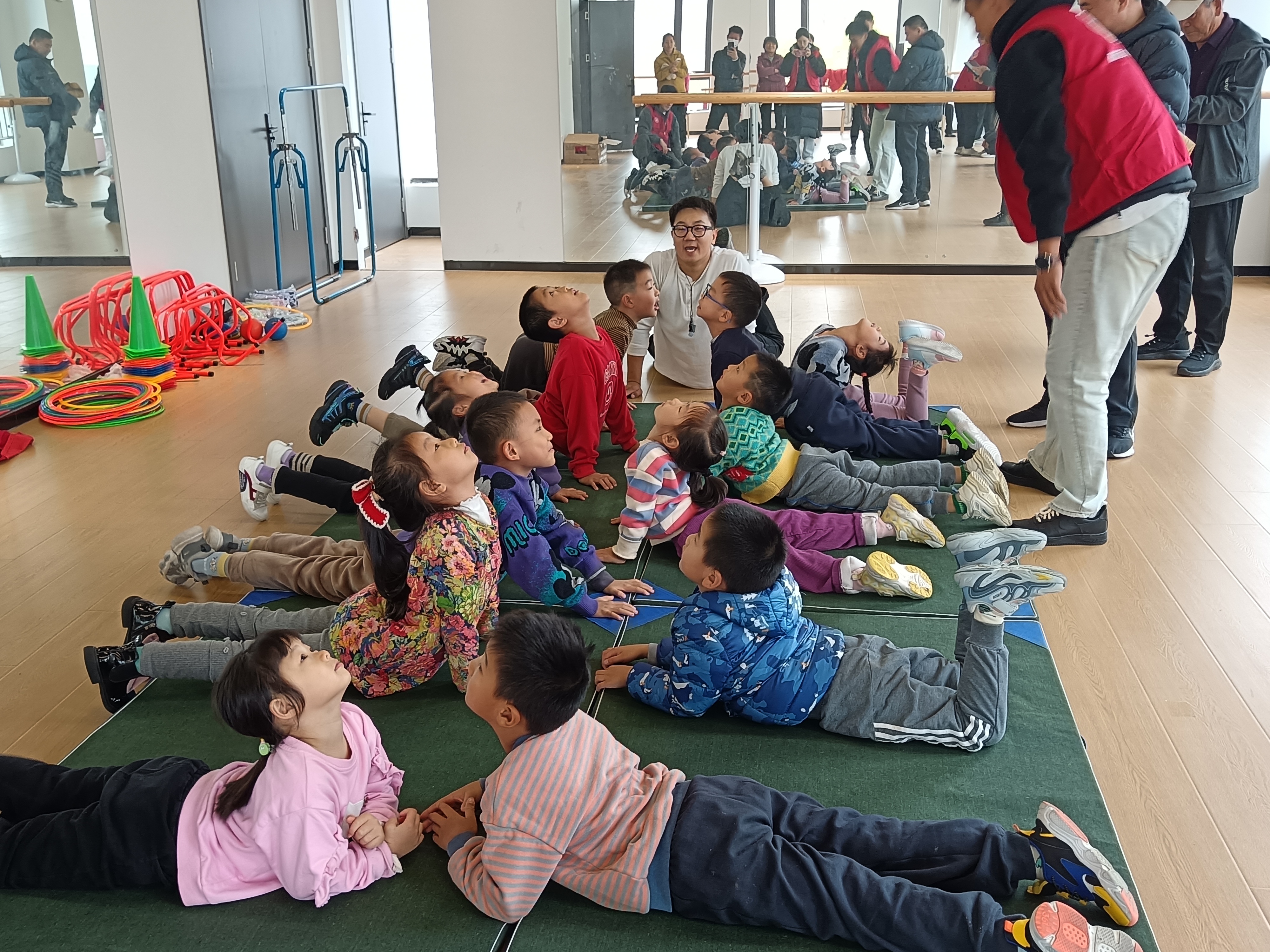 活动伊始,孙圣林老师在带领志愿者和孩子们做热身活动的同时还讲解了日常生活中运动注意事项,孩子们认真听讲,并学习相关动作。在活动过程中,孙圣林老师设置了多个趣味小游戏来让孩子们感受体育的魅力,如毛毛虫、烤地瓜、小蝴蝶、翻跟头等等。跳跃、奔跑......在一片欢笑和汗水的浸润中,孩子们兴致盎然地认真完成了老师定下的每一项体适能训练任务,释放了孩子们热爱运动的天性,并充分感受到运动的乐趣。在游戏中,志愿者们还向孩子们传授了一些简单的体育技巧和健康知识,让他们了解到运动的重要性。在玩游戏的同时,志愿者们也对孩子们做了必要的保护措施,避免受伤情况的发生,让游戏玩的安全又有趣。
