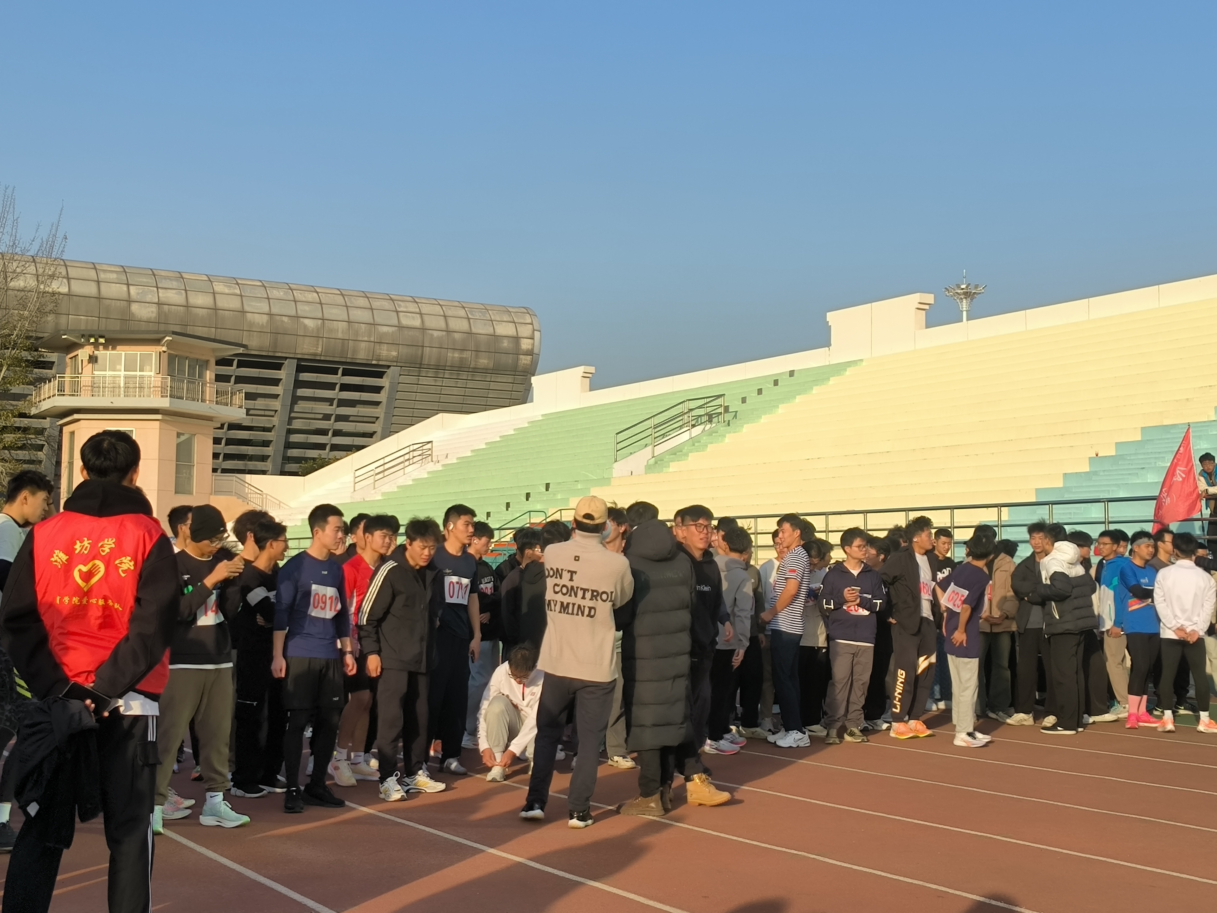 本次比赛以潍坊学院田径场为起点终点,分为教职工和学生两个团体竞赛进行,沿学校外环路,赛程项目分为男子组与女子组。比赛开始前,参赛的老师和学生有序到达起点领取号码牌并仔细阅读比赛规则,完毕后进行热身活动。经裁判鸣枪示意,领跑的轿车鸣笛由起点出发,各位选手斗志昂扬地冲出起跑线,选手们你追我赶,奋力向前。他们在奔跑中追忆爱国的怒潮,用奋斗的步伐砥砺前行,焕发朝气蓬勃的青春风采。场外的教职工和学生的加油声、呐喊声如潮水般涌向整个赛道,消弭了凛冽的寒风。参赛选手们秉承着坚持不懈的竞技精神冲向终点线,结束了此次长跑比赛的征程。