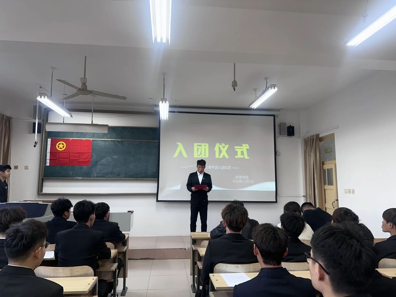 为凝聚青年力量,弘扬五四精神,始终牢记团员责任和义务,为团组织注入新的活力。12月7日在体育学院T207教室开展了入团仪式活动,此次活动由体育学院学工办主任高欢、团委副书记兼2022级辅导员孙圣林、2024级辅导员梁笑、体育学院团总支书记、团员代表、2024下半年全体新发展团员参与活动,2023级体育教育3班姜王文龙主持。