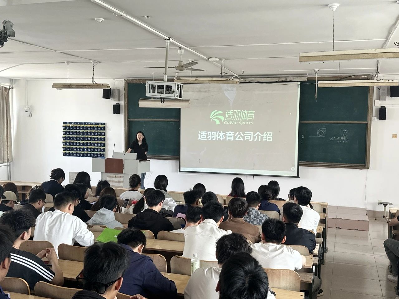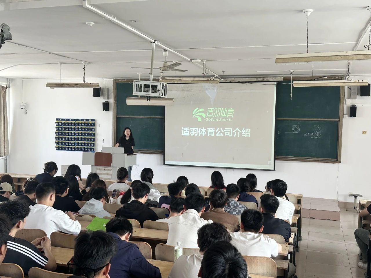 宣讲会伊始,适羽负责人简要介绍了企业的发展历程、行业地位以及企业文化。她提到:“自成立以来,适羽体育始终秉持初心不断深耕。如今,企业正处于高速发展阶段,急需大量优秀人才,期待同学们能加入我们,与企业共同成长。”同时还详细介绍了本次校园招聘的岗位需求、招聘流程、薪资福利以及职业发展路径。为了让同学们更直观地了解企业的工作环境,宣讲会现场播放了精心制作的企业宣传视频,展示了企业的办公场所、团队活动。此外,企业还邀请了优秀的在职员工来到现场,分享他们在企业的工作经历和成长故事。在随后互动环节,同学们积极提问,就岗位要求、工作内容、实习安排等方面提出了自己的疑问。企业负责人耐心细致解答,现场交流氛围十分活跃。