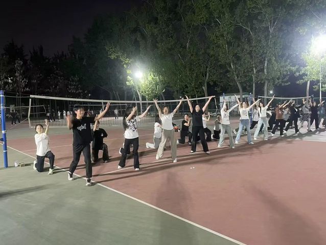 每天傍晚,操场都被热情填满。队员们从最基础的动作规范开始,一步一步打磨自己。简单的手位、步伐,他们反复练习,力求精准到位。手臂伸展时,线条笔直有力;脚步移动间,节奏明快清晰。汗水不断从额头渗出,顺着脸颊滑落,浸湿了衣衫,可他们的眼神始终坚定,没有丝毫懈怠。多人团体操训练时,难度更高,对团队协作要求极为严苛。队员们要保证动作整齐划一,节奏分毫不差,空间位置完美衔接。面对训练中的失误,大家不气馁、不抱怨,迅速围在一起,你一言我一语,积极探讨改进办法,展现出强大的团队凝聚力。