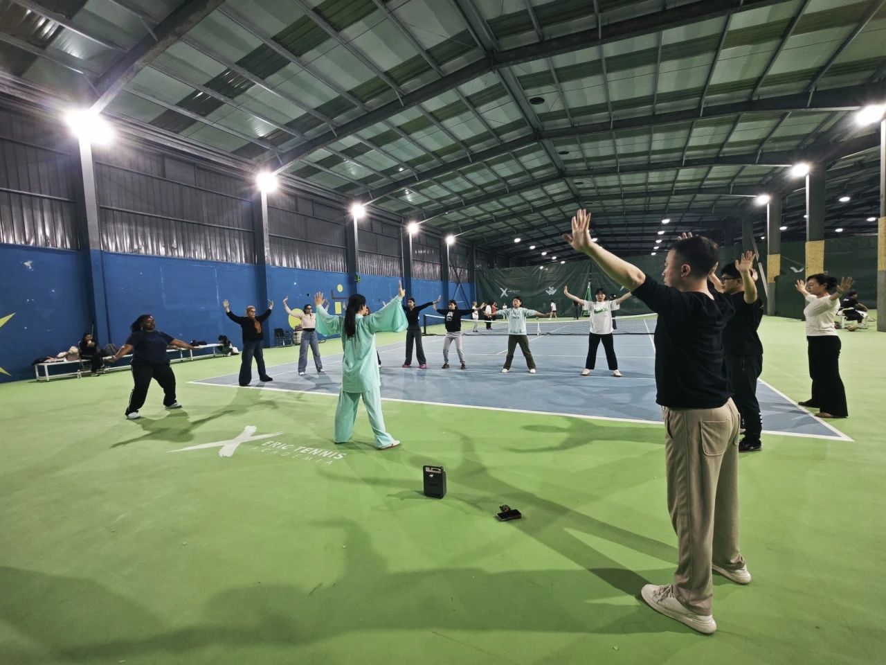 王惠洁则以其专业生动的讲解,从握拍姿势、基本站位,到发球、接球的技巧,每一个动作都进行了细致入微的拆解与示范。在讲解握拍姿势时,她亲自走到学员旁,手把手地纠正大家的姿势,耐心解答每个人的疑问。在练球环节。王惠洁安排了丰富多样的练习形式,她不断穿梭于各个小组之间,密切关注学员们的动作,及时给予指导和鼓励。