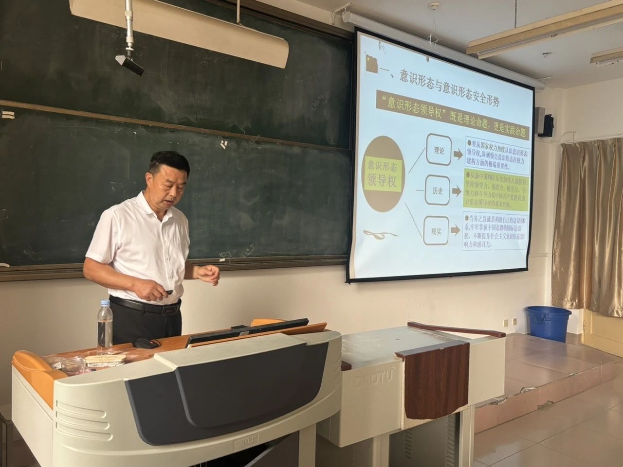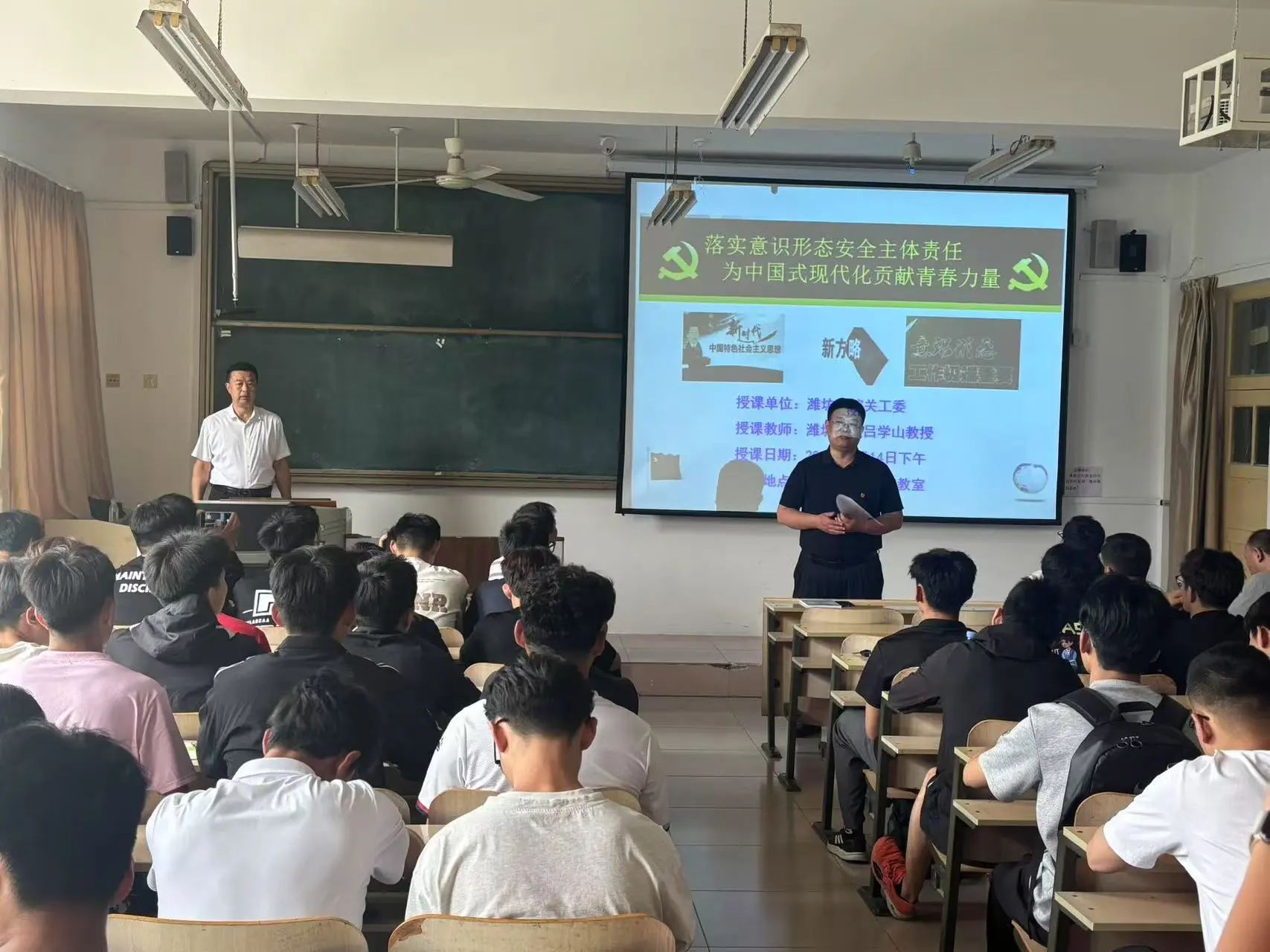 为深入贯彻落实党的二十大精神,强化意识形态安全责任意识。5月14日下午,体育学院联合学校老干处成功举行“落实意识形态安全主体责任,为中国式现代化贡献青春力量”专题党课。党课活动由体育学院党委书记孙创业主持,老干处副处长代宝刚、学院党委副书记兼副院长魏星出席,吕学山教授担任主讲师。