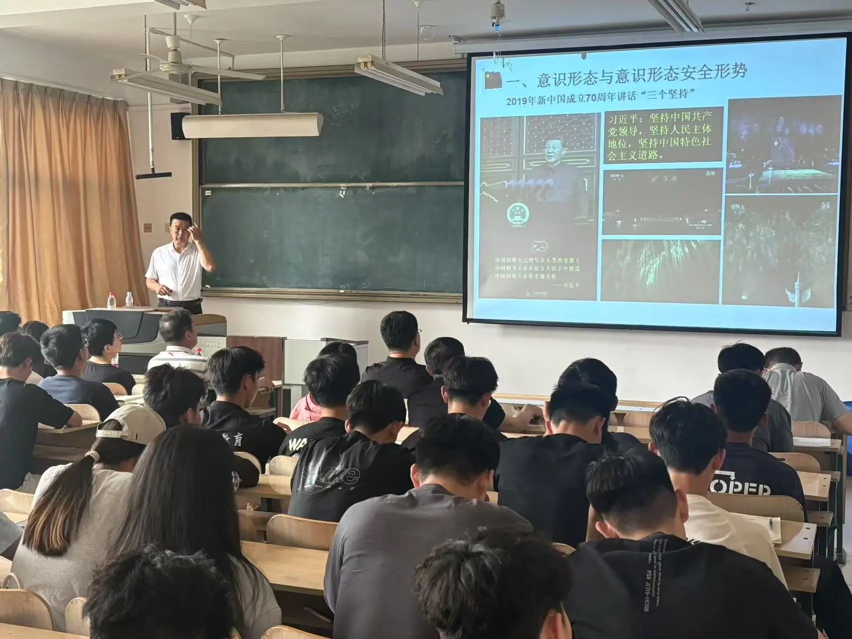 活动伊始,孙创业表明老干处与体育学院携手开展党课学习既是新老思想的交融碰撞,更是强化意识形态安全责任的生动实践。随后,吕学山结合体育领域意识形态工作特点,深入剖析当前意识形态安全面临的机遇与挑战。他强调体育不仅是竞技比拼,更是文化交流与价值观传播的重要载体,体育学院师生要在日常生活和工作中主动弘扬中华体育精神,以专业优势讲好中国故事。最后吕学山通过典型案例分析,引导并呼吁大家在学习和生活中自觉承担起责任,传承体育文化。