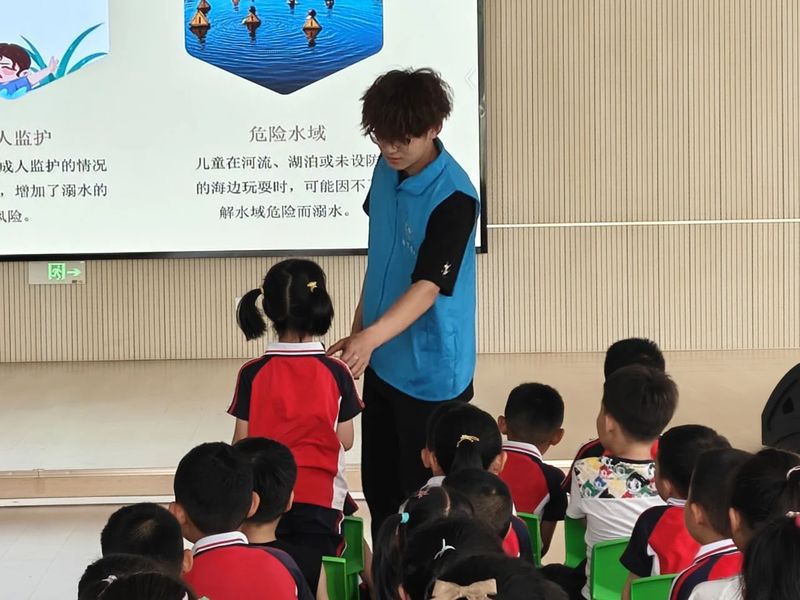 为了增强儿童防溺水安全意识,有效预防溺水事故发生,切实保障儿童的生命安全 。5月22日,体育学院爱心服务队联合金樱幼儿园开展 “安全童行,远离溺水‘陷阱’” 志愿服务活动。