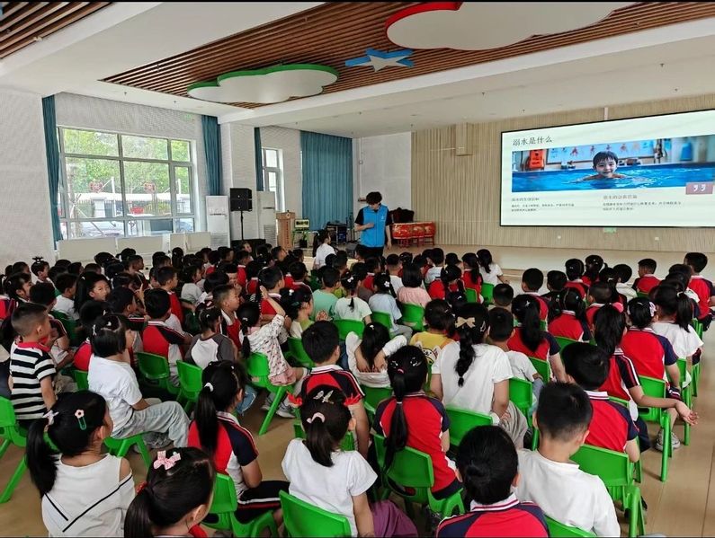 活动伊始,志愿者们化身“安全讲师”,借助制作的ppt课件与真实案例视频,直观地向孩子们讲解溺水的严重危害、危险水域类型等知识。利用简单易懂的语言和形象的展示,让幼儿初步建立起对溺水危险的认知。随后互动问答环节,现场气氛热烈。孩子们踊跃举手,回答志愿者提出的防溺水相关问题。儿童们清晰准确的回答,展现出对防溺水知识的良好掌握。志愿者们还为积极参与的孩子送上小奖品,进一步激发了大家的学习热情。此外,体育游戏环节,志愿者们组织了互动性强的趣味运动会。小篮球、沙包等器材派上用场,趣味投篮接力赛、丢手绢等团队游戏有序开展。孩子们在欢快的游戏氛围中尽情奔跑、协作,不仅锻炼了身体素质,还在团队互动中收获了快乐与成长。