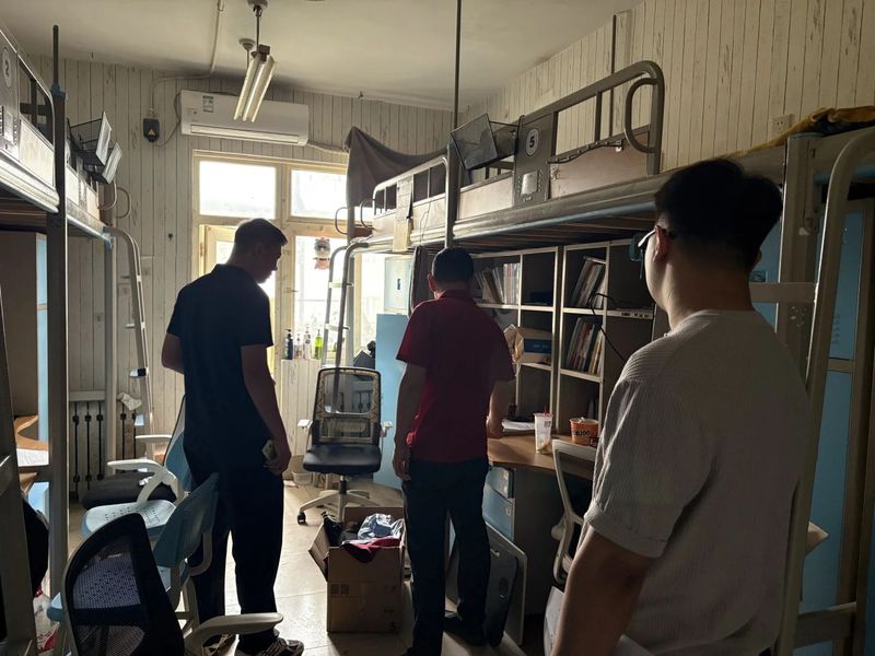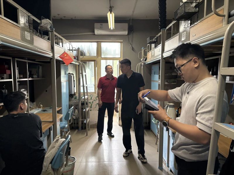 本次安全月的活动主题是“人人讲安全、个个会应急——查找身边安全隐患”。 检查过程中,魏星一行人重点查看了宿舍地面卫生、物品摆放、床铺整理、卫生间清洁及安全隐患等方面,并与学生亲切交流,询问他们在生活上的需求和困难,鼓励同学们继续保持良好的生活习惯,共同营造温馨和谐的宿舍氛围。本次宿舍检查大部分宿舍卫生状况良好,物品摆放整齐,部分宿舍还进行了个性化装饰,展现了积极向上的生活风貌。针对个别宿舍存在的插线板串接、阳台杂物堆积等问题,现场提出整改意见,同学们现场整改。学院领导还特别强调了宿舍用电安全问题,提醒同学们务必提高安全意识,严禁使用违规电器,杜绝安全隐患,共同维护宿舍安全稳定并鼓励同学们积极参与到安全生产月的各项活动中来,学习安全知识,提高应急能力,共同为校园安全贡献力量。