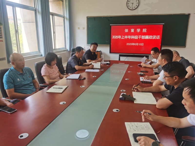 6月10日上午,体育学院党委召开科级干部集体廉政谈话会议,学院党委书记孙创业主持会议并作专题谈话。学院领导班子成员、党委委员、书记院长助理、各系部主任、各科室中心主任参加会议。