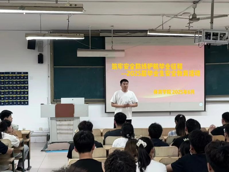 为增强2025届毕业生安全防范意识,帮助毕业生顺利走向社会,6月9日,潍坊学院体育学院在T301教室开展2025届毕业生安全教育活动。本次活动由体育学院学工办主任兼2021级辅导员高欢主持,全体2021级毕业生参与。