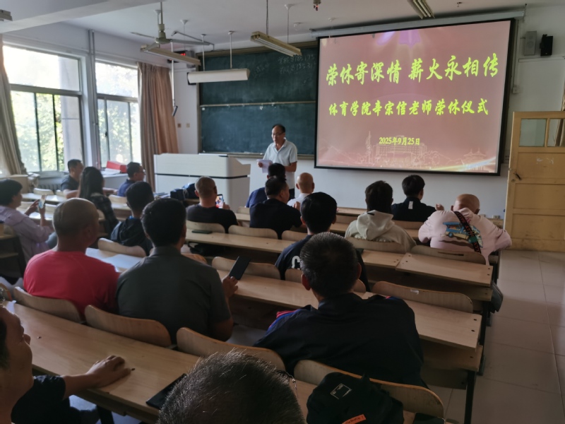 9月25日,体育学院在党校教室举行辛宗信老师荣休仪式,全体教职工向辛老师致以崇高敬意与诚挚祝福,仪式由学院党委书记孙创业主持。
