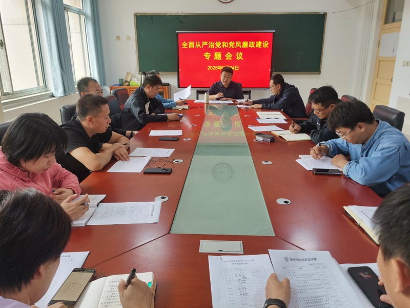 9月24日,体育学院党委召开全面从严治党和党风廉政建设专题会议,体育学院党委书记孙创业主持会议,学院党委委员、领导班子成员、各党支部书记及系部负责人参会。