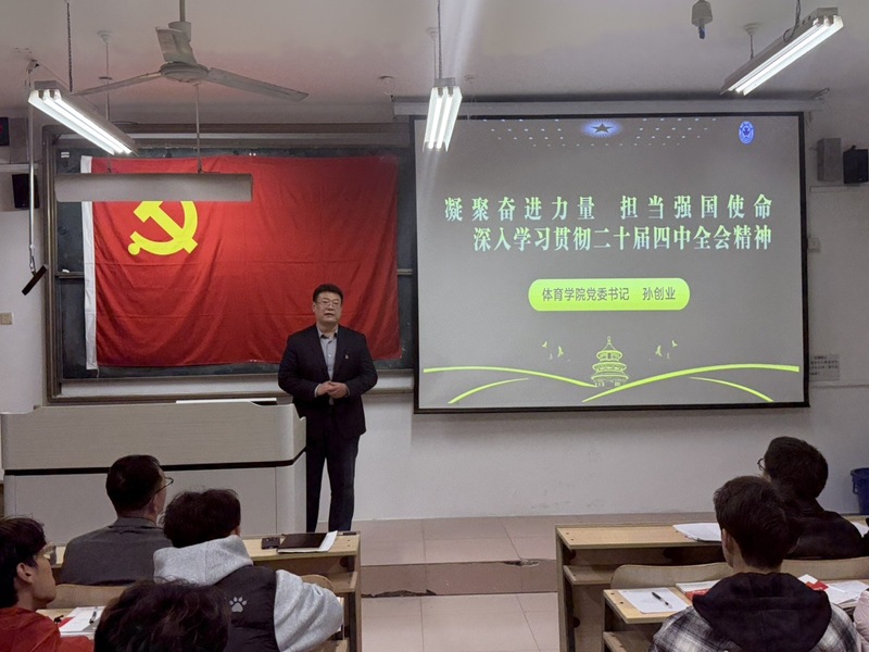 为深入学习贯彻党的二十届四中全会精神,引导入党积极分子深刻体悟全会精神内核,提升入党积极分子的思想觉悟和政治素养。11月3日,体育学院党委书记孙创业以“凝聚奋进力量,担当强国使命——深入学习贯彻党的二十届四中全会精神”为主题,于207教室为全体学员上了开班第一课。