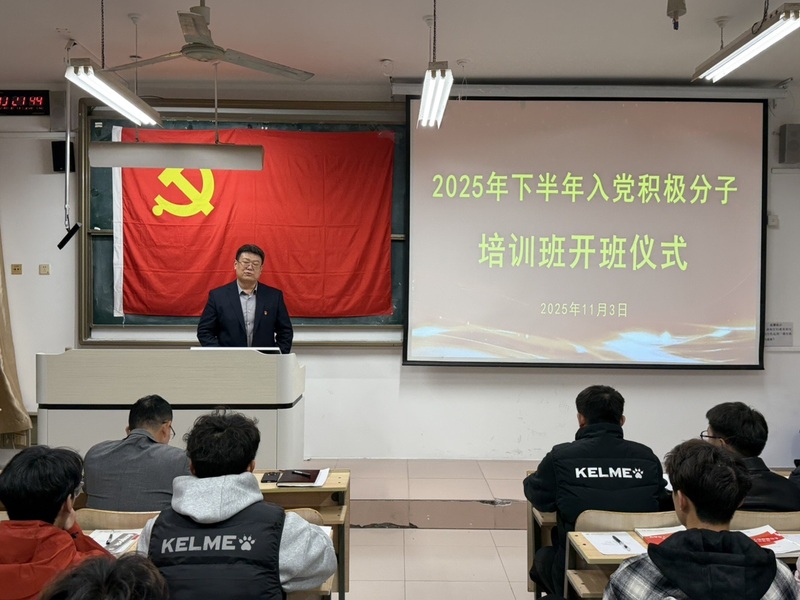 为深入贯彻落实党的二十届四中全会精神,切实做好入党积极分子培养教育工作,进一步提升入党积极分子的思想政治觉悟与理论素养,从严从实把好发展党员“入口关”“政治关”“质量关”。11月3日,体育学院在207教室举行2025年下半年入党积极分子培训班开班仪式。体育学院党委书记孙创业,党委副书记、副院长魏星出席仪式,各年级辅导员及全体入党积极分子参加培训。