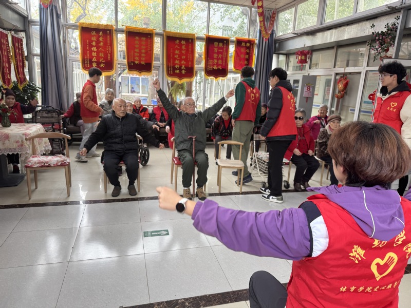 为响应“百万大学生进社区”号召,深化校社协同养老服务。2025 年 11 月 8 日,体育学院爱心服务队走进潍坊市君泰托老中心开展线下服务老人活动,同步启动高科技智能健康筛查公益行动,以专业体育资源与智能技术为老年群体送上精准健康关怀。