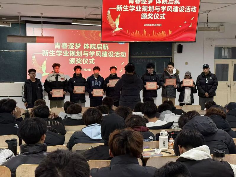 为鼓励新生积极规划大学学业规划,明确学业方向、涵养优良学风。11月20日,体育学院自律委学习部主办的新生学业规划与学风建设活动颁奖仪式在T301教室顺利展开,2025级全体新生参与本次颁奖典礼。