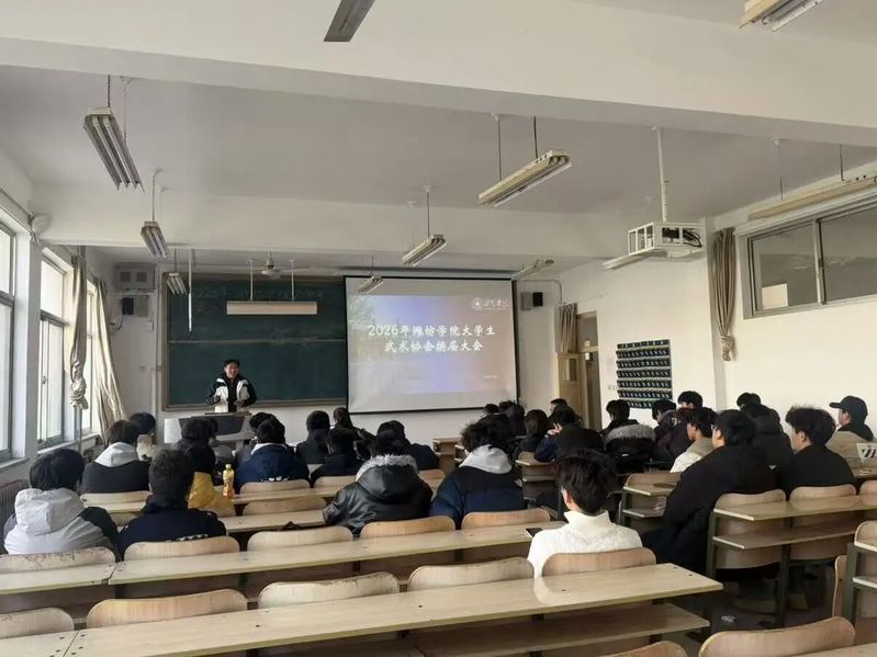 为传承武术精神、凝聚社团力量,顺利完成学生骨干新老交替,推动校园武术文化高质量发展,潍坊学院大学生武术协会2026年换届大会于2026年3月19日在体育学院110教室顺利召开。协会指导老师秦志华、往届干部代表、全体会员共同参会,见证换届交接与使命传承。大会由武协负责人高琛主持。