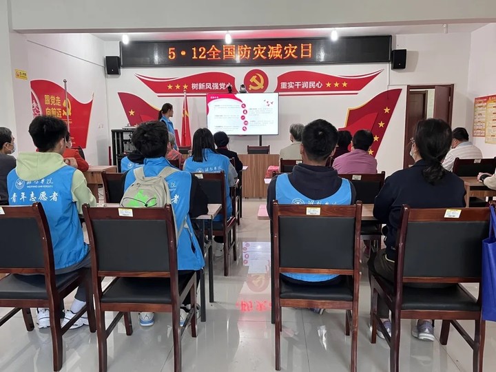 活动伊始,社会实践部负责人石乔同学带领志愿者有序进入会议室,并由陈敏同学为社区居民宣讲消防安全PPT。通过播放典型火灾案例警示教育片,让社区居民更直观、更形象地了解到火灾的危险性。活动中,陈敏同学深入浅出地讲解了面对突发情况应如何进行自救,如何在保护自己生命的同时将损失降到最低,并全面介绍了灭火器使用方法。重点讲述了日常用火、用电、用气方面的安全知识,以及火灾发生时的逃生技能,社区居民们听得聚精会神。随后,针对居民们存在的火场自救能力不强的问题,志愿者特别提醒要注意生活用火、用电安全,谨防煤气、液化气和天然气泄漏,不要随意吸烟、不乱扔烟头,不在楼道内乱堆乱放,保持消防通道的畅通。最后,志愿者们还在社区工作人员的陪同下,到附近商户开展防消安全隐患排查,希望能够有效提升平安指数。